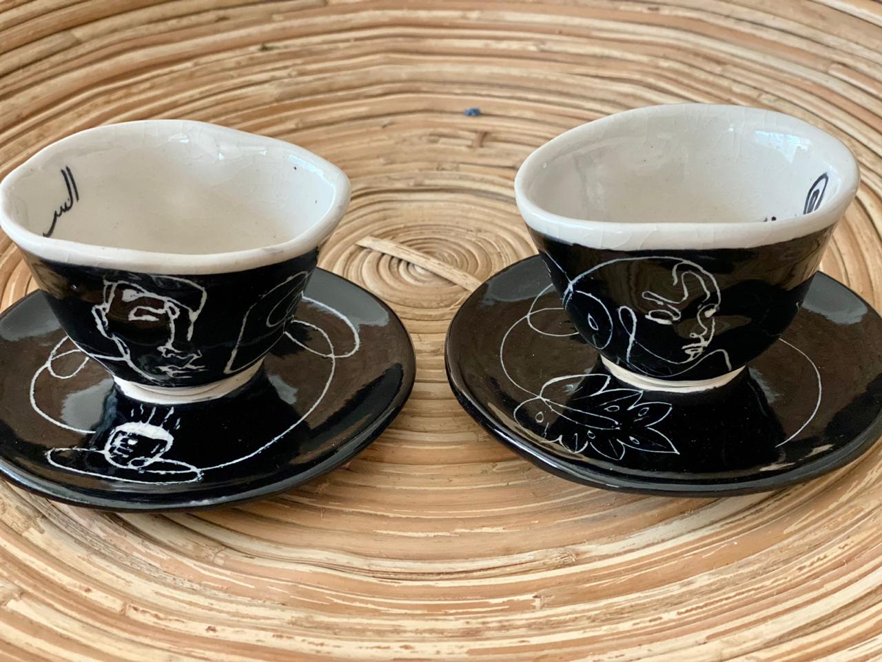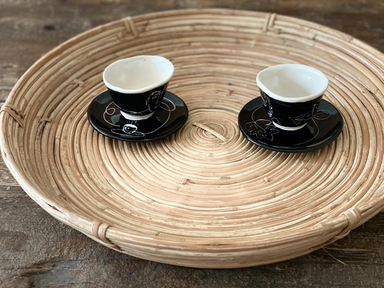 Ceramic decorated tea cub (100ml) set of two with matching coasters