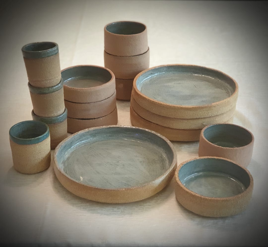 Ceramic inner-glazed tableware set of four consisting of 16 stackable pieces ;