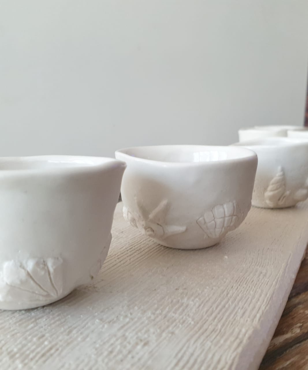Set of six Expresso cups (50ml) with beach theme sculpture and matching server-tray.